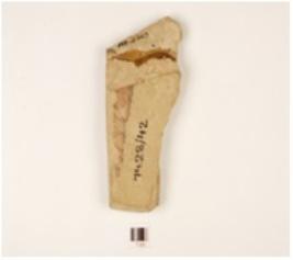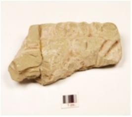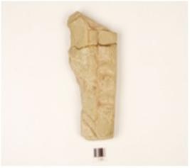 | Description / विवरण | Fragment of a stone sculpture, having shallow carving,has a smooth surface, broken end joined chemically. |