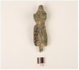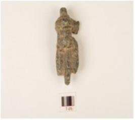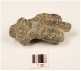 | Description / विवरण | a trident shaped fragment of a sculpture, having bangle like design in the base and surface is polished. |