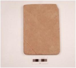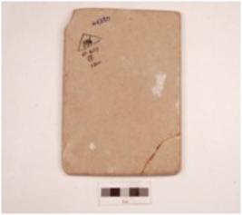 | Description / विवरण | A tile made on sandstone rectangular in shape, two edges are broken, engraved incised lines on surface with floral lotus petal motif altered with cross hatched design. |