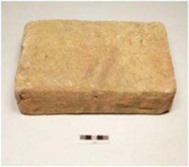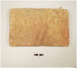 | Description / विवरण | A handmade rectangular shaped terracotta brick slightly chipped off and scratches on all over the surface. |