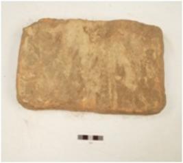 | Description / विवरण | A handmade rectangular shaped terracotta brick slightly chipped off and scratches on all over the surface. |