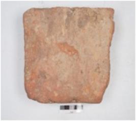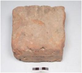 | Description / विवरण | Fragment of a handmade terracotta brick, rectangular cross-section and slightly chipped off. |