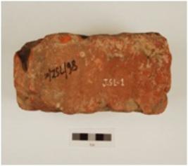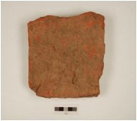 | Description / विवरण | Fragment of terracotta brick rectangular in shape treated with red slip. |