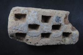 | Description / विवरण | It is a broken fragment of a brick made of terracotta was found in Agroha. It is not well fired and color is red. It has some incised small square pits on its front side. The object loosing its natural color. Deposition of dust and dirt on it. |