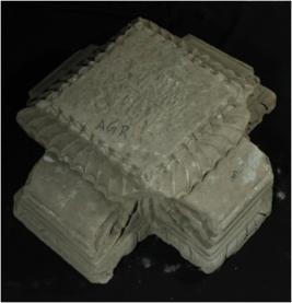| Description / विवरण | Trench XD 9, Qdt 2, layer 2, depth 240 cm It is a base of pillar made of stone. Base is parted into four similar blocks. Every block is decorated with lotus petals on the bottom margin and more carving is done on every block. On the top is a smaller base in rectangular shape and decorated on the margin with lotus petals. |