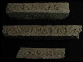 | Description / विवरण | Trench XD 9, Qdt 2, layer 2, depth 240 cm It is a door jamb made of stone, broken into three pieces. Door jamb is the vertical section of a door frame which acts as a support or the remainder of the frame as well as the door itself. It is decorated with engraving on the front facet. |