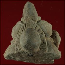 | Description / विवरण | Trench XG 7, Qdt 1, Stratum layer 2, Depth 70cms. It s a floral part of architectural fragment and a kind of insignia made of stone. Lotus leaves are carved around a round conical knot in the middle. |