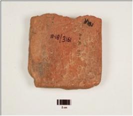 | Description / विवरण | Fragment of handmade terracotta tile piece rectangular in shape and rough surface. |