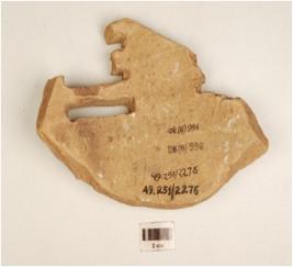| Description / विवरण | Fragment on the exterior figure of an architecture members, shown with perforated rectangular shape decorative with in incised lines and applique decorative on top. |
