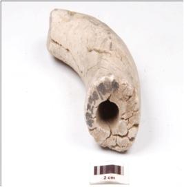 | Description / विवरण | An architectural member of alababaster, tapering from one end, hole at the base, horn like object. |