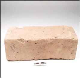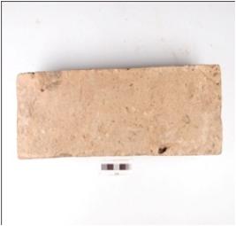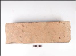| Description / विवरण | A terracotta slip brick with rectangular shape and rough surface. |