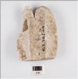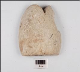 | Description / विवरण | Fragment of a compex made of alabaster damaged surface. |