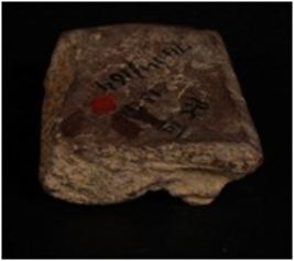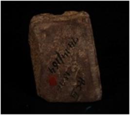 | Description / विवरण | Fragment of a stone slab with lower portion of human figurine made on it and lines on surface. |