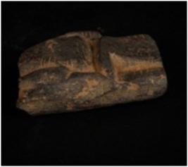 | Description / विवरण | Fragment of a stone slab with unidentify figure made on it and incised line on surface. |