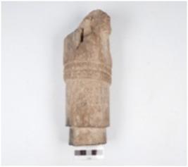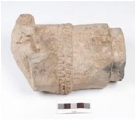 | Description / विवरण | A stone column with elaborate decorations in the middle, round base with a square hole, polished surface and partly damaged. |