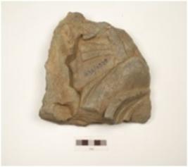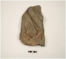 | Description / विवरण | A panel depicting curved leg of a sitting male figure, the folds of drappery are seen. |