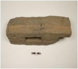 | Description / विवरण | Fragment of railing with two socket on the surface. |