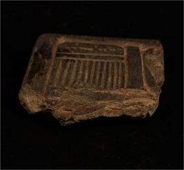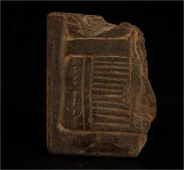 | Description / विवरण | Square fragment of a stone slab. Top part is curved with vertical lines and horizantal lines. |