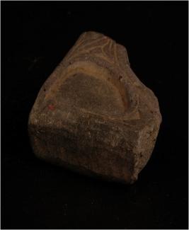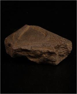 | Description / विवरण | Fragment of a stone slab. One side of the slab has design in belief curved, grooved design. |