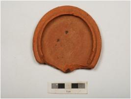 | Description / विवरण | Fragment of terracotta lamp, circular in shape, slightly incurved rim with large and wash treatment given on surface in dull red colour. |