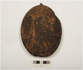| Description / विवरण | Fragment of terracotta lamp. Circular in shape. Slightly inturned rim, wick is slightly broken, chipped off from surface and slip treatment given in black colour. |