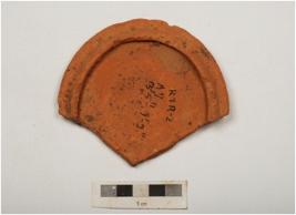 | Description / विवरण | Fragment of lamp, circular in shape, slightly inturned rim, slightly chipped off from edges, wash treatment given in dull red colour and base. |