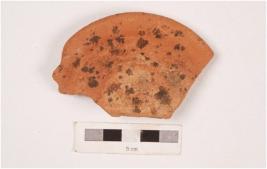 | Description / विवरण | Fragment of lamp with smooth surface thickened rim visible and flat base. |
