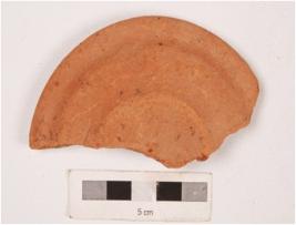 | Description / विवरण | Fragment of terracotta lamp with smooth surface and thickened rim visible. |