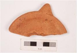 | Description / विवरण | Fragment of terracotta lamp with smooth surface thickened rim with intact wick visible. |