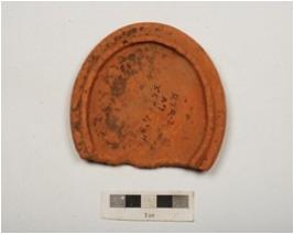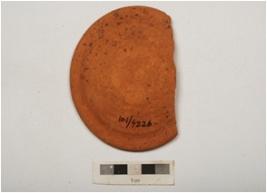 | Description / विवरण | Fragment of terracotta lamp. Circular in shape. Slightly incurved with ladger and wash treatment given in dull red colour. |