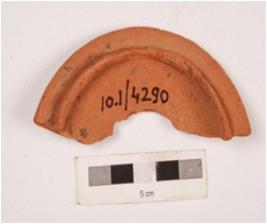 | Description / विवरण | Fragment of terracotta lamp with smooth surface and shallow base and thickened. |