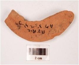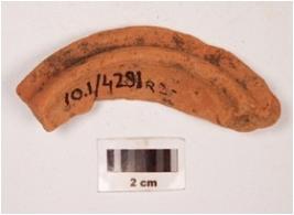| Description / विवरण | Fragment of terracotta lamp with smooth and shallow surface and thickened. |