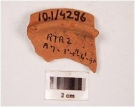 | Description / विवरण | Fragment of terracotta lamp with smooth and shallow surface and thickened. |