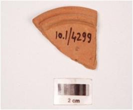 | Description / विवरण | Fragment of terracotta lamp with smooth surface thickened rim. |