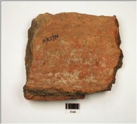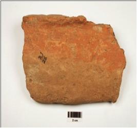 | Description / विवरण | A fragment of votive tank of red ware, has a flat base, treated with red slip, of coarse fabric, and ill baked. |
