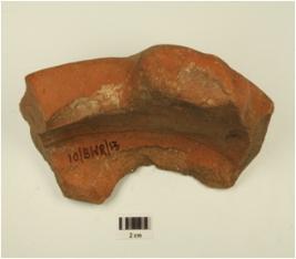 | Description / विवरण | Fragment of an votive tank treated with red slip on both the surfaces. |