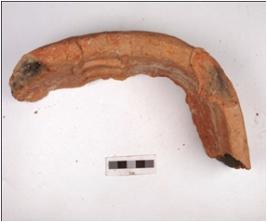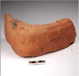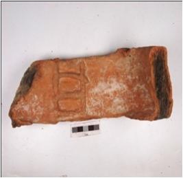 | Description / विवरण | Fragment of a votive tank of red ware, treated with red slip on surface, decorated with applique ladder like design on interior, and coarse fabric. |