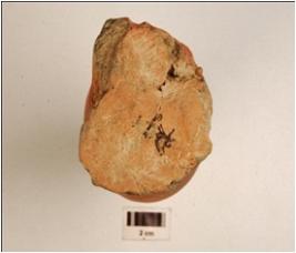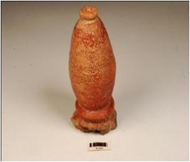 | Description / विवरण | Fragment of finial of red ware, treated with red slip on the exterior and oval profile. |