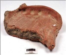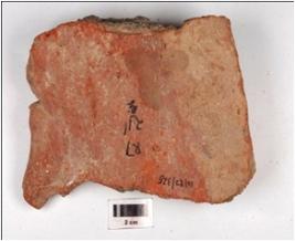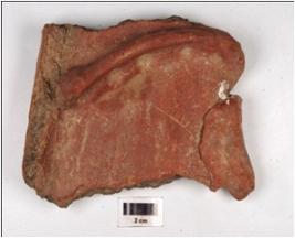 | Description / विवरण | A fragment of votive tank of red ware, treated with red slip on both sides. |