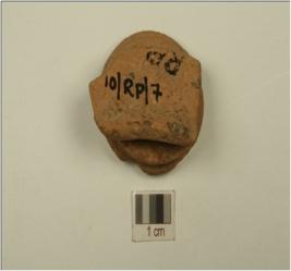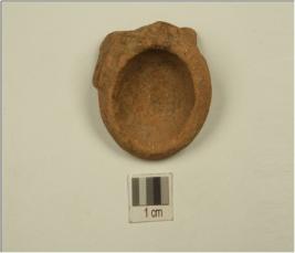 | Description / विवरण | A miniature lamp of dull red ware with an incurved rim,incision below and probably was luted to a votive tank. |