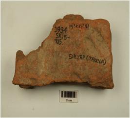 | Description / विवरण | Fragment of miniature votive tank divided in two segment, rectangular in shape and flat base. |