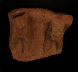 | Description / विवरण | Fragment of a terracotta votive tank. It is partly broken on the edges. Two human figurines were shown as sitting. The upper part of the human figurines are broken. Among the two human figurines one is shown as wearing a waist band. |