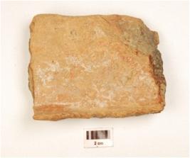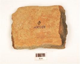 | Description / विवरण | Fragment of hand made terracotta votive tank, red slip and well baked. |