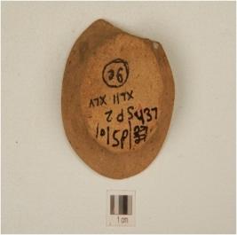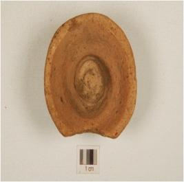 | Description / विवरण | A lamp of dull red ware with featureless rim, tapering profile, footed base, of medium fabric. |