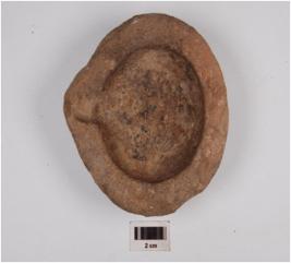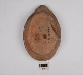 | Description / विवरण | A offering lamp of hand made dull red ware with a wick, disc base and of medium fabric. |