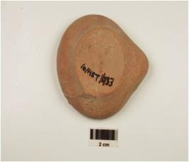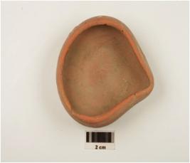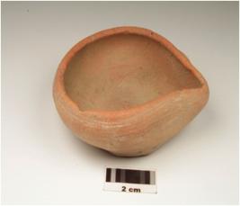 | Description / विवरण | A beak lamp of red ware, of medium fabric showing an oxidized core, treated with red slip and flat base. |