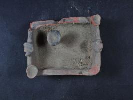 | Description / विवरण | It is a worship object made of terracotta. It is well fired and its colours is red. It has some fire pot on its rim s corner. It has a symbol on inner side. It may be used for as a worship object. |