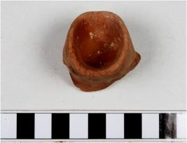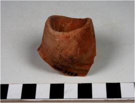 | Description / विवरण | A fragment of a lamp of red ware with featureless rim, tapering sides broken base of medium fabric. |