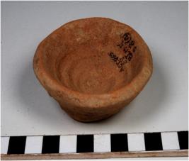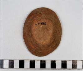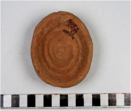 | Description / विवरण | A complete lamp of red ware with featureless rim, tapering sides, flat base of medium fabric. |