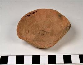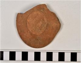 | Description / विवरण | A fragment of a lamp of red ware with featureless rim forming beak, tapering sides, disc shape base of medium fabric. |